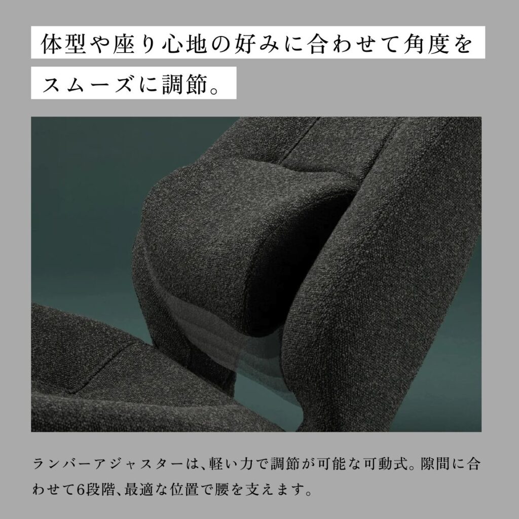 背もたれと腰の間にできがちな隙間をしっかり埋めてくれる構造により、どんな体型の方でも、腰がふわっと支えられる感覚が得られます。